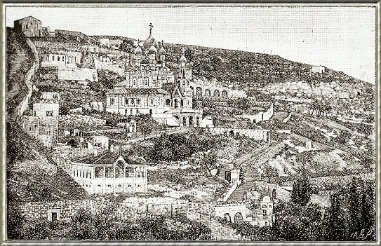 Монастырь "Русская духовная миссiя" содержится темъ, что большiе дома, построенные для поклонниковъ, изъ-за отсутствiя паломниковъ после революцiи, теперь сдаются въ наемъ и берутся за нихъ гроши. Вся братiя живетъ скромно, даже бедно. Только русскiй храмъ Богу - прекрасенъ и богато снабженъ.Провели мы между нашими русскими, православными милые часы. Мягкая славянская натура, гостепрiимство, искренность вызвали съ нашей стороны искреннее сочувствiе. Такъ прiятно, какъ между православными русскими, не чувствовалось ни между католиками-французами, ни между протестантами-немцами!