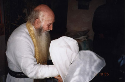 А приехала она отчитаться. Видно мысль у нее такая была. Я говорит, отчитаюсь за жизнь, покаяние принесу. В годы гонений на веру у нее был свой духовный старец Симеон. О котором она всегда говорила: «Это мой духовный старец Симеон. Перед своей кончиной он всех нас, своих духовных чад предал Господу». А матушке сказал: «Теперь у тебя духовника не будет»... Вероятно, провидел наперёд, да и время-то какое было.… И вот матушка, отчитавшись отцу Даниилу за всю свою жизнь, говорит: « Ну, теперь батюшка прочитайте мне: « Ныне отпущаеши…» На что отец Даниил отвечает: « Ну, это потом. Уходить еще пока рано, еще надо помолиться и здесь пожить». А матушка говорит: «Тогда благословите меня с вашими духовными (там несколько священников было) работать. То есть с нами работать, мы тогда совсем молодые были… А ведь духовно научить можно только от сердца к сердцу. Только соприкоснувшись, как от огня перенять огонь, это как от горящей свечи зажечь другую свечу, подобно этому и христианские сердца … Вспоминаю слова которые, сказал матушке пришедший монах, о котором будет сказано чуть позже: «На тебе должно истинное Православие устоять». И слова Спасителя из Евангелия: «Огонь пришел Я низвести на землю, и как желал бы, чтобы он уже возгорелся» (Лк. 12, 49)
