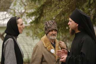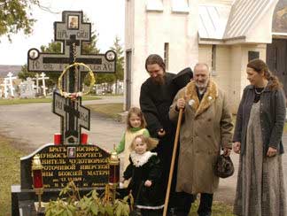 Потом посетили на монастырском кладбище могилу мученика Иосифа, хранителя Монреальской Мироточивой иконы. Там мы встретили почитателей памяти брата Иосифа, Михаилу (американку, а похожа ведь на русскую! :-)) и двух ее американят. Все они украшали крест чисто русскими вербами: