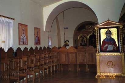 Честно говоря, не похоже на монастырь. Но это ошибочное впечатление. В монастыре все построено по подобию Афона, даже стасиди - специальные сидения в Храме, и хорус - большой круг по центру Храма, который раскачивают во время больших праздником. Такое раскачивание символизирует корабль Православия среди мира сего.