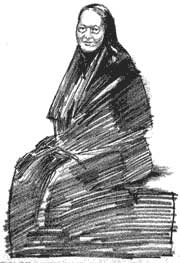 В неволе она иногда меняла хлеб на нитки и иголки для того, чтобы вышивать образы, которые давали ей силу. Ее последнее произведение искусства - вышитая икона Марии, Матери Господа, держащей младенца Иисуса, на его руках и ногах уже были раны от Креста.